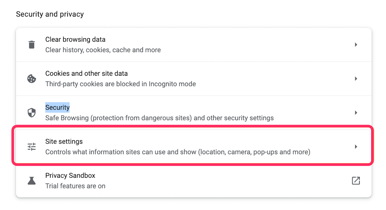 Click on Site settings.