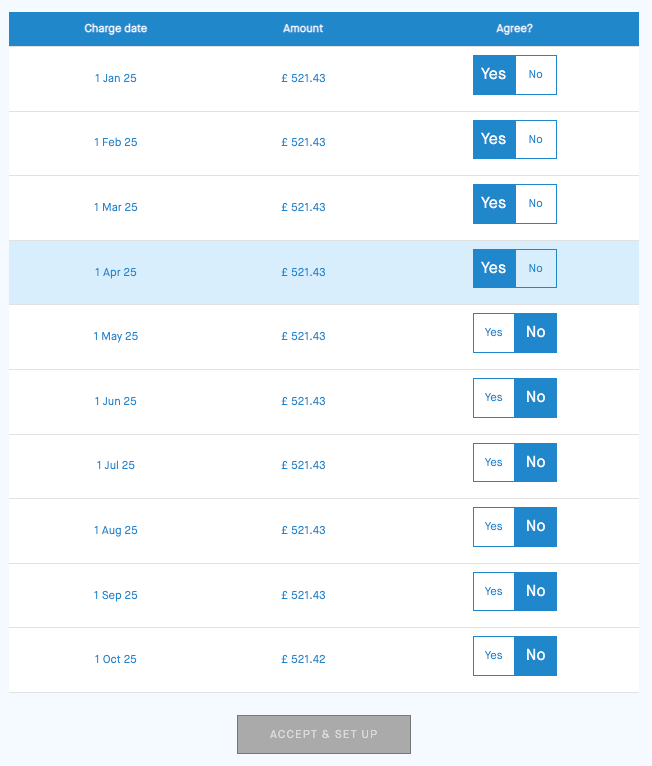Select Yes to agree to each date and amount.