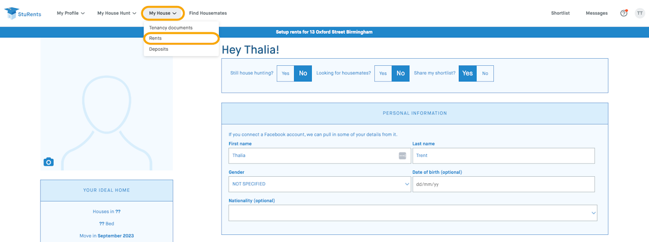 Go to Rents under My House section.