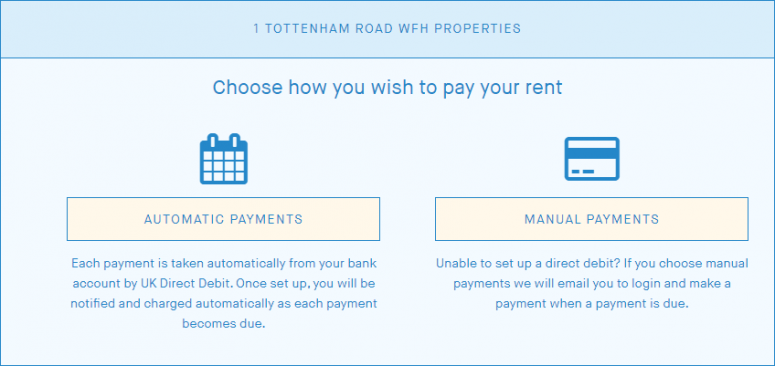 If your property manager allows you to pay your rent using non Direct Debit methods, you will have the following options after selecting Manual payments when setting up your collection: